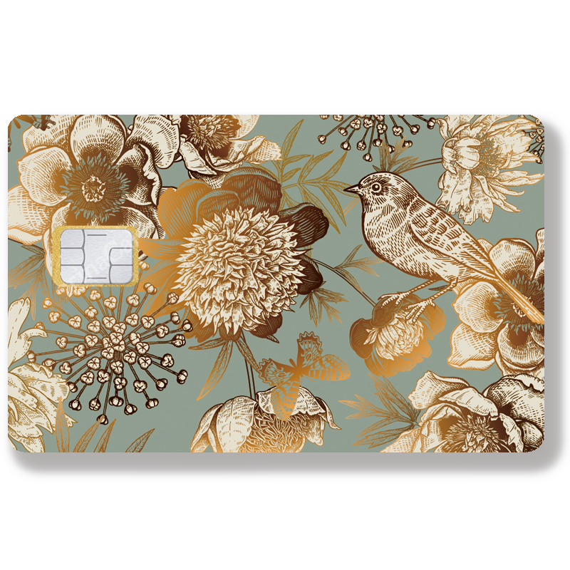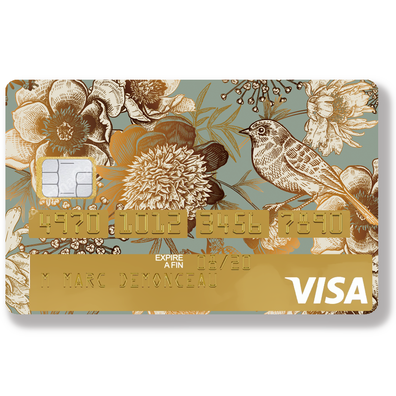 Oiseau d'or - Sticker pour carte bancaire, disponible en deux formats.